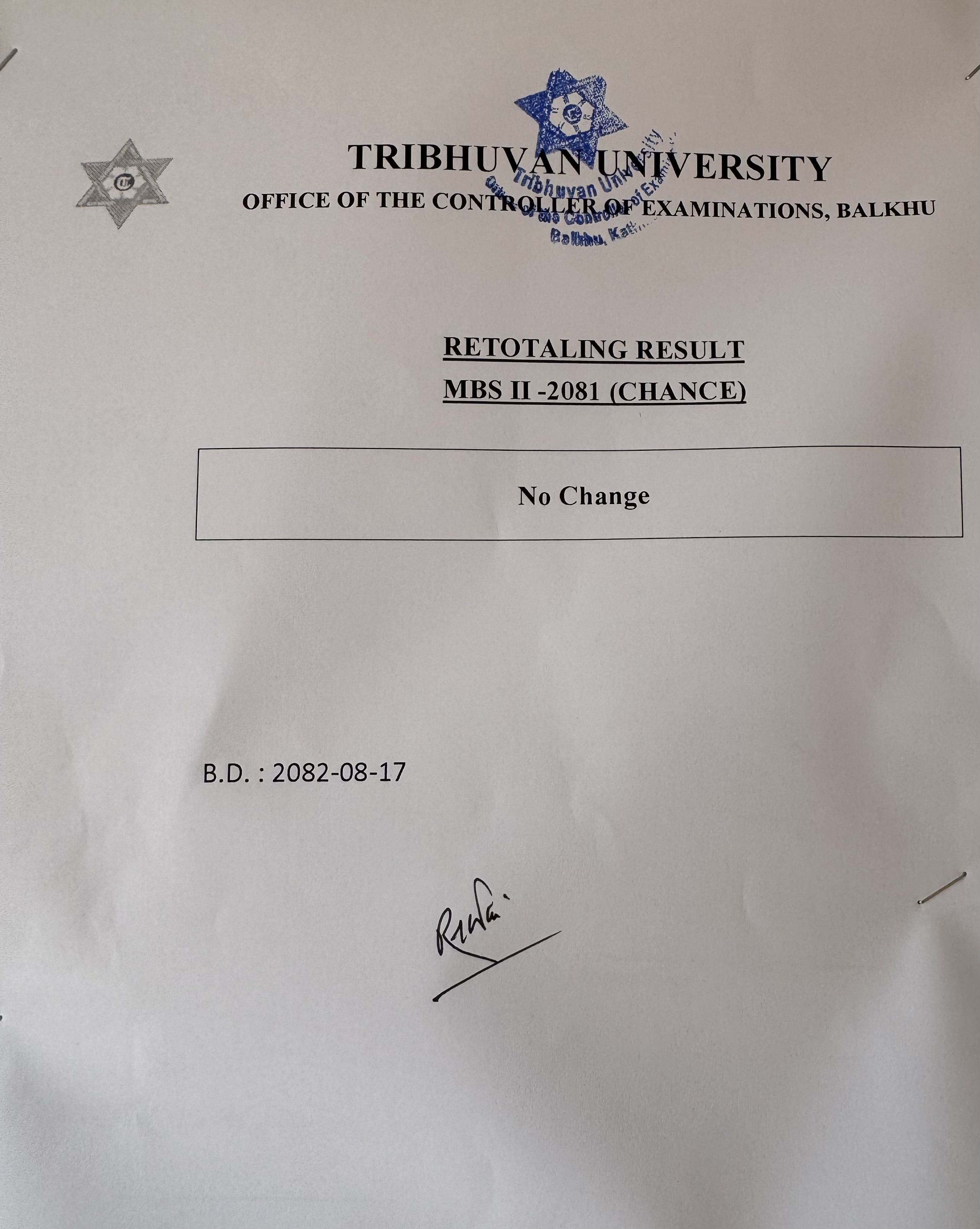 MBS Second Year Retotaling -2081 Chance Result Published