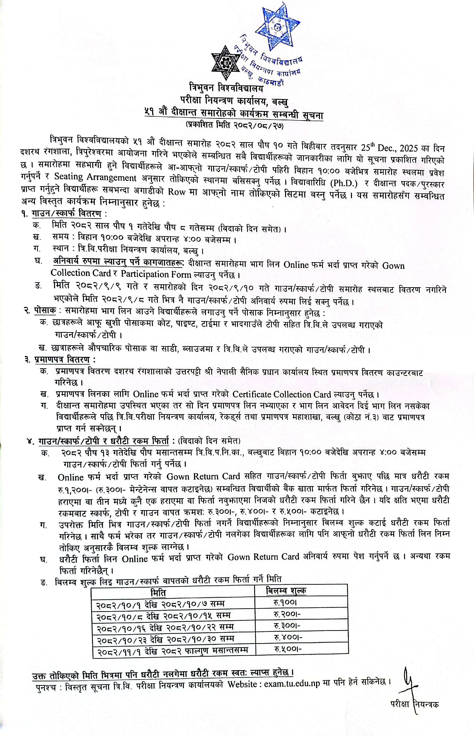 ५१ औं दीक्षान्त समारोहको कार्यक्रम सम्बन्धी सूचना