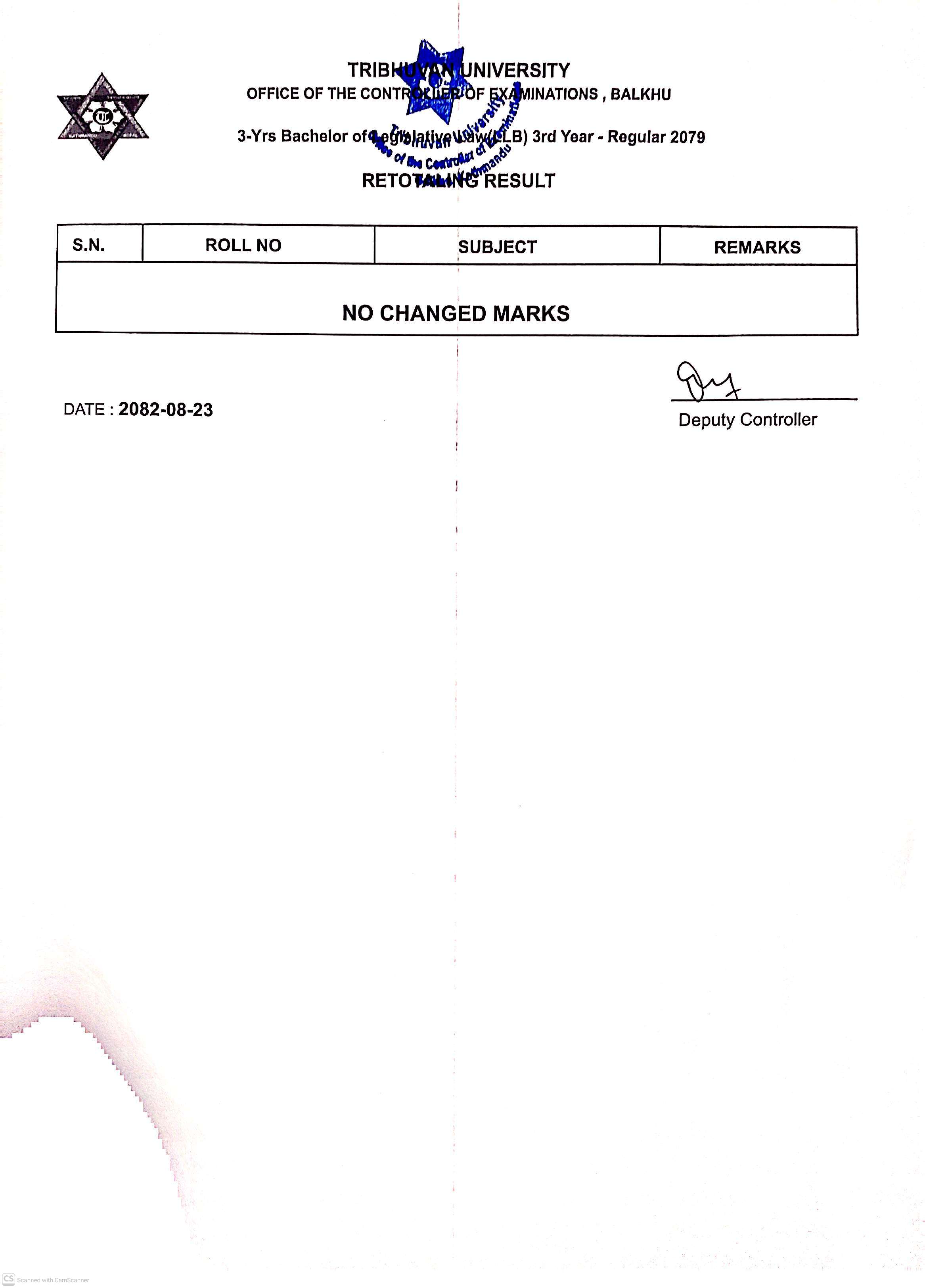 Bachelor of Laws (LL.B.) New Course Second Year Regular 2079 Retotaling Result