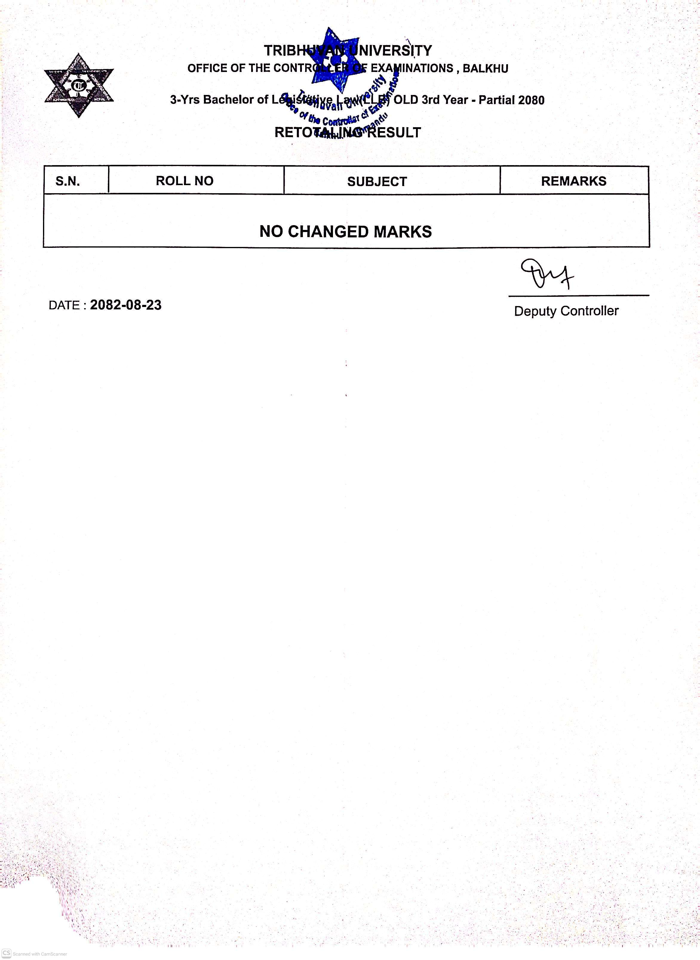 Bachelor of Laws (LL.B.) Old Course Second Year Partial 2080 Retotaling Result