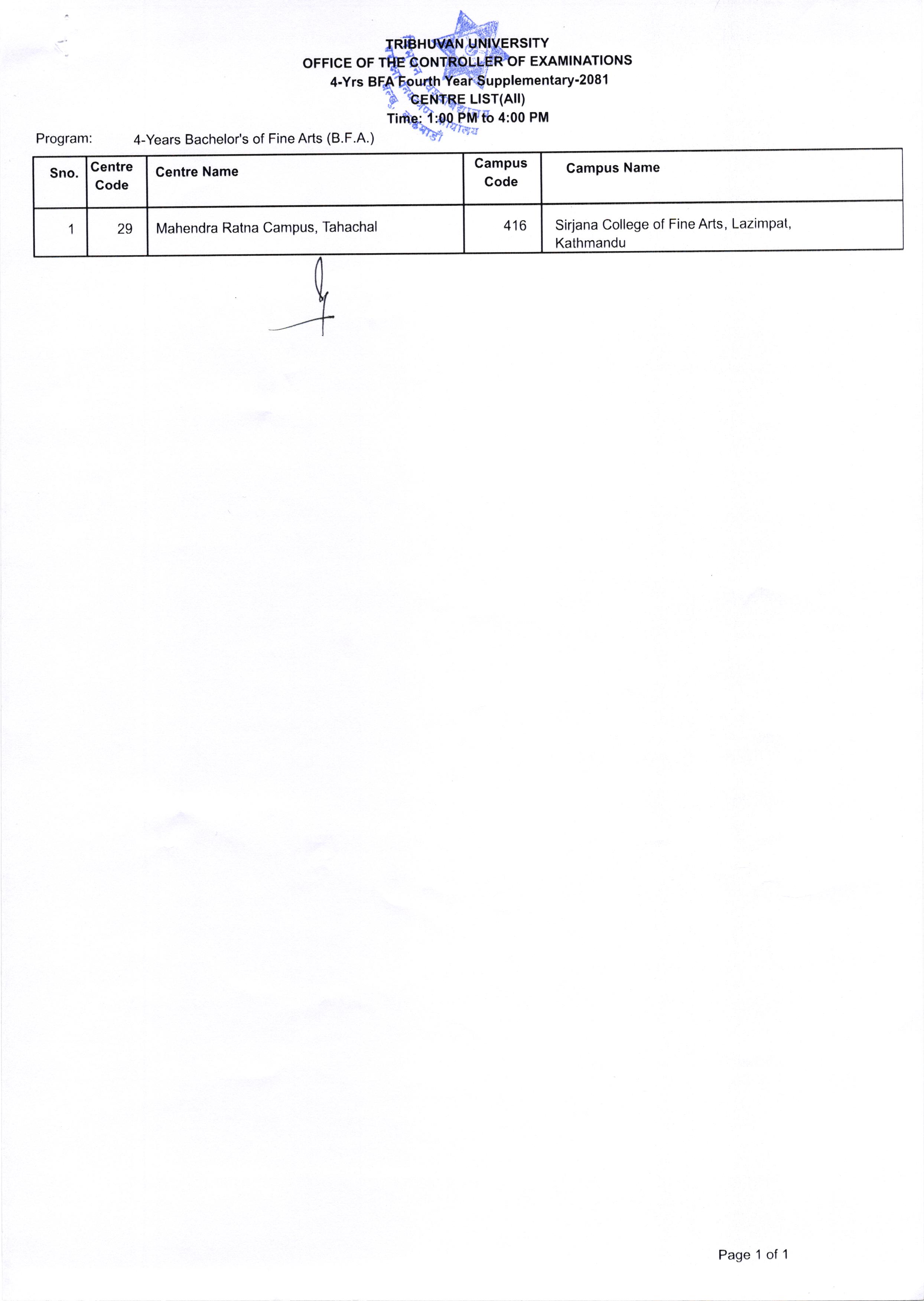 Exam Centre : ४ वर्षे स्नातक तह BFA चौथो वर्षको पुरक परीक्षा केन्द्र