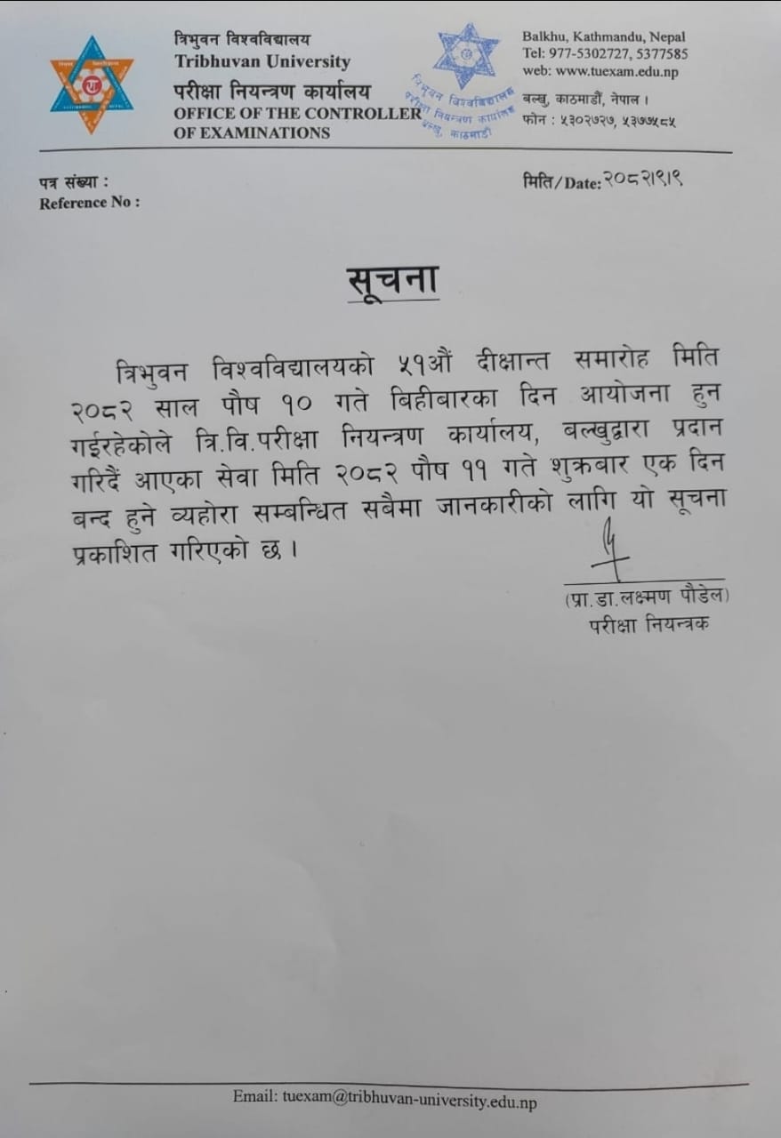भर्ना समूह २०८२ (2025) सालको त्रि.वि. रजिष्ट्रेशन सम्बन्धी सूचना ।