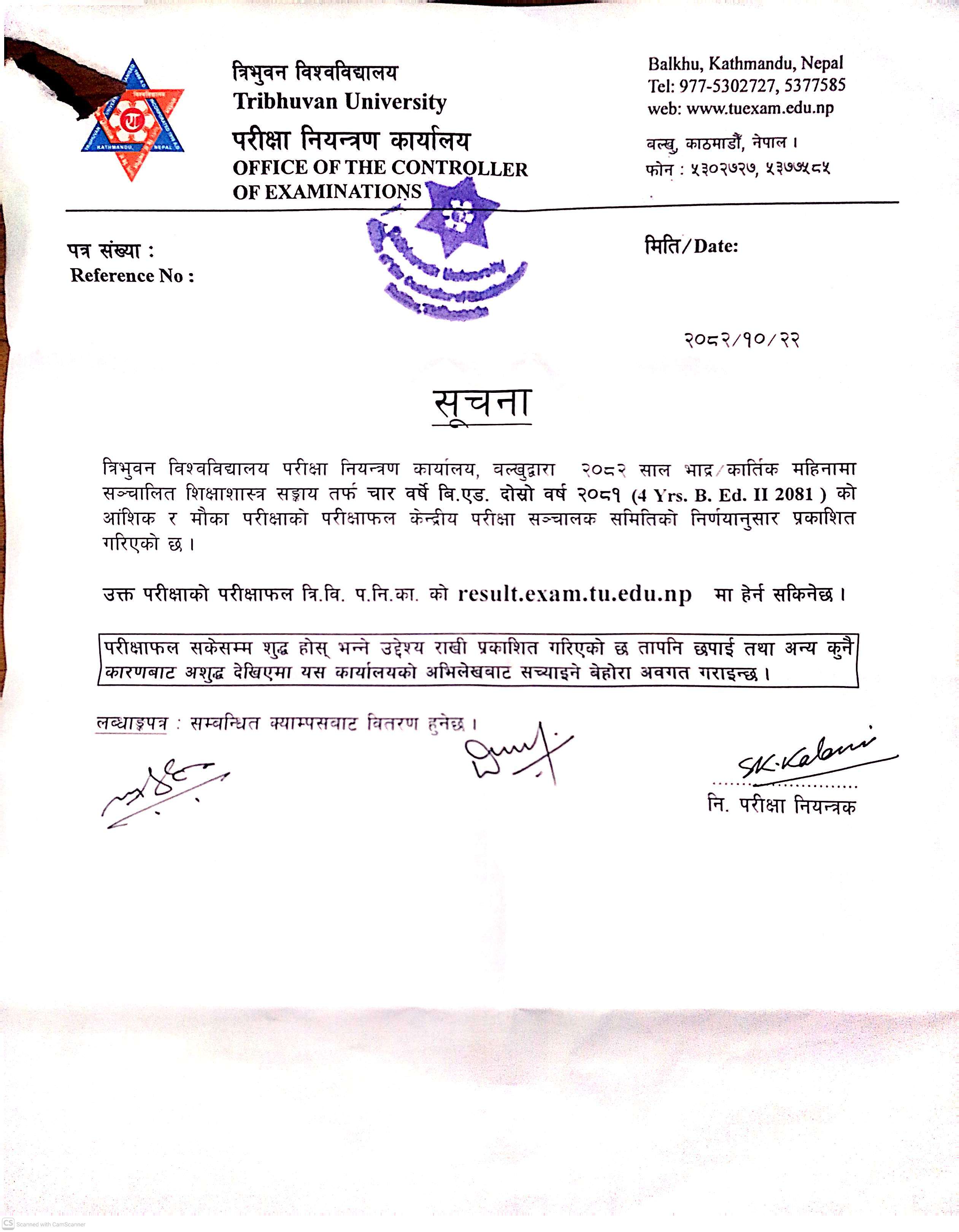 भर्ना समूह २०८२ (2025) सालको त्रि.वि रजिष्ट्रेसन सम्बन्धी संशोधित सूचना ।
