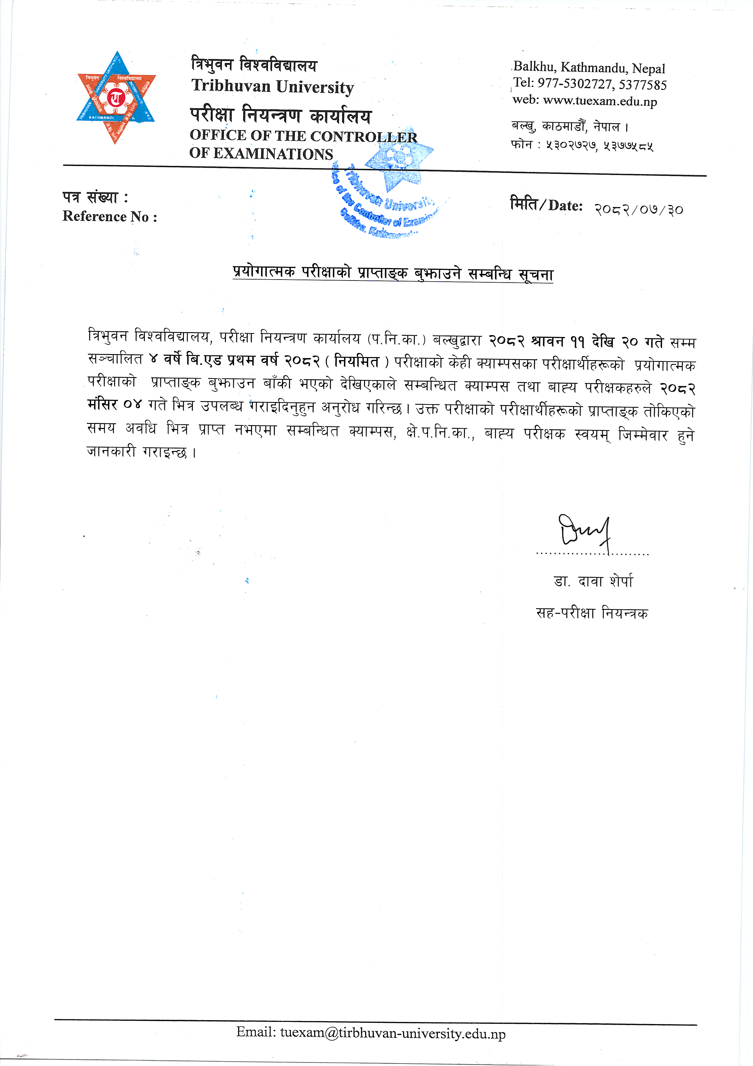 भर्ना समूह २०८२ (2025) सालको त्रि.वि रजिष्ट्रेसन सम्बन्धी संशोधित सूचना ।