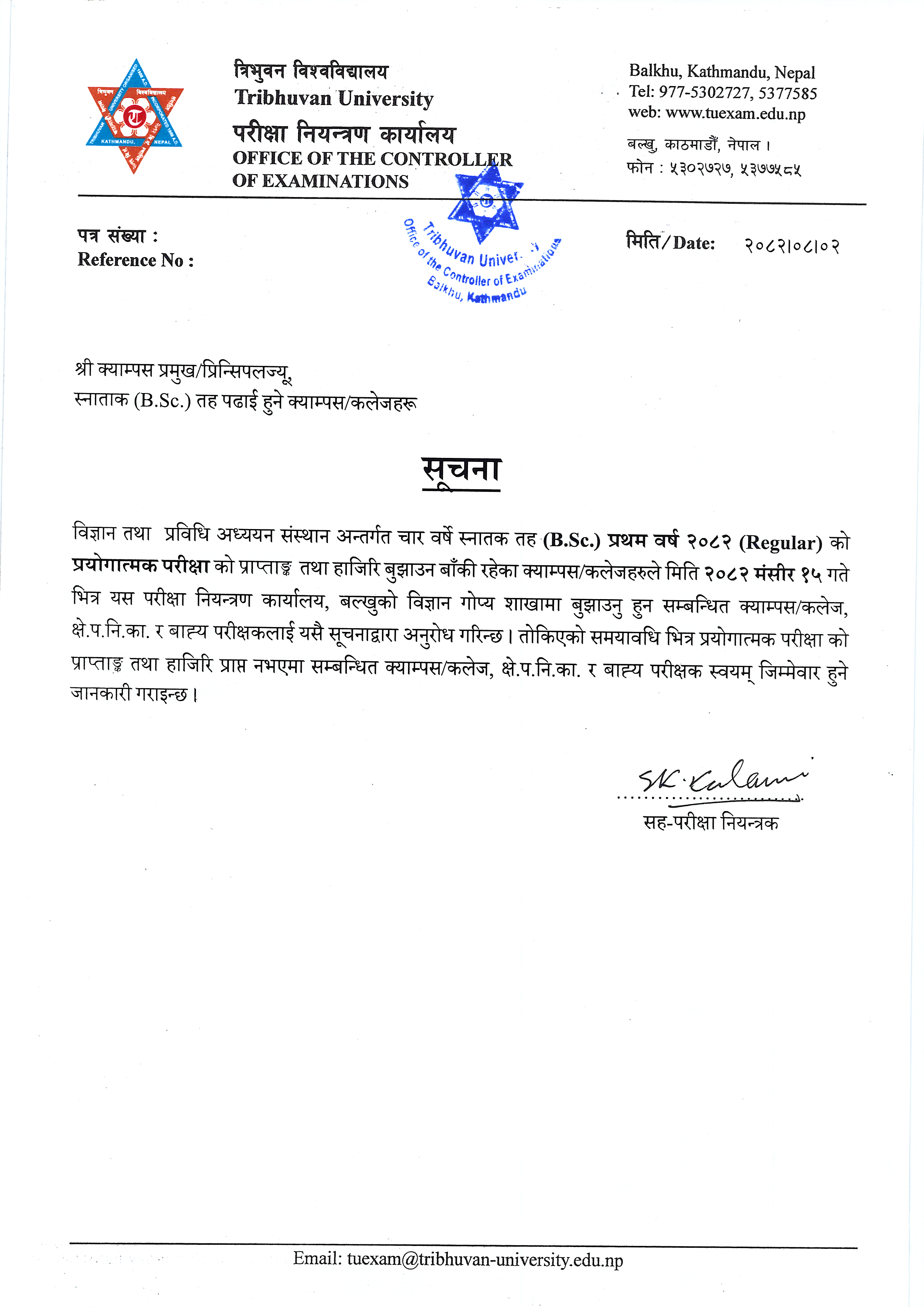 4-Years B.Sc. Second Year Regular 2082 Practical Marks, Attendance Submission Notice.